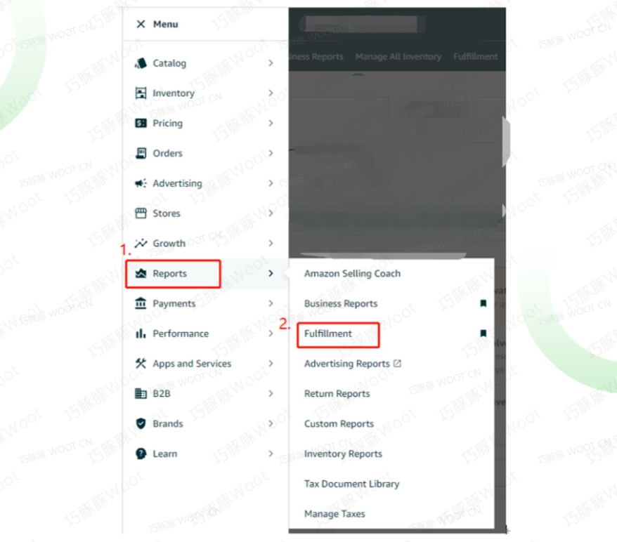 1)点击Report – Fulfillment 进入亚马逊配送报告页面