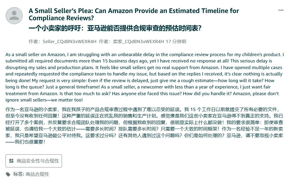 面对合规审核的种种问题,许多卖家呼吁亚马逊: