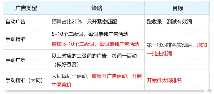 所以前期重点还是放在曝光和点击上,尽快出单,同时把转化率和关键词排名一起往上带。这一阶段主要推二级词,更容易起量。