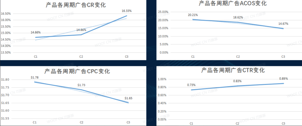 广告占比下降,ACOS 控制明显,说明自然流量已成为主要来源,链接已经在靠自身表现带动流量 。
