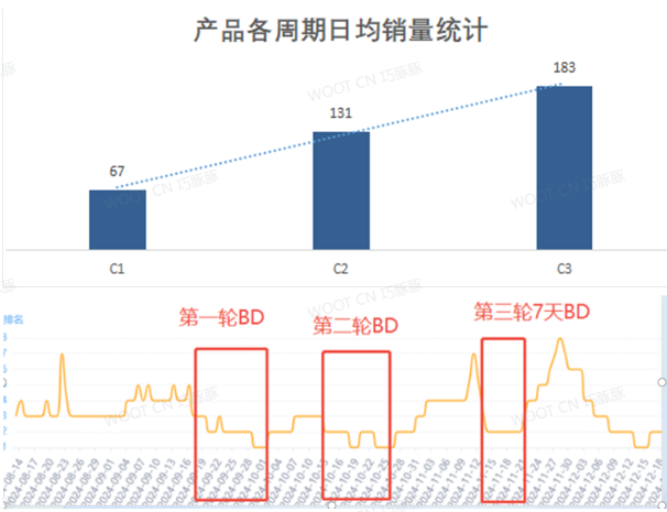 在判断站内常规打法已难以突破的情况下,卖家经由巧豚豚提报 WOOT 活动,通过三轮 WOOT BD 重新打开局面。