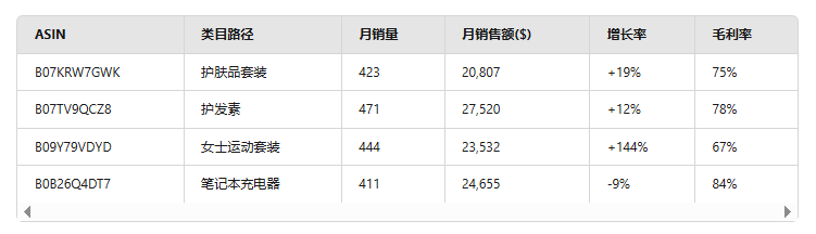 - 根据实际情况限定条件,让AI多角度出发分析各个产品并给出排名靠前的潜力产品