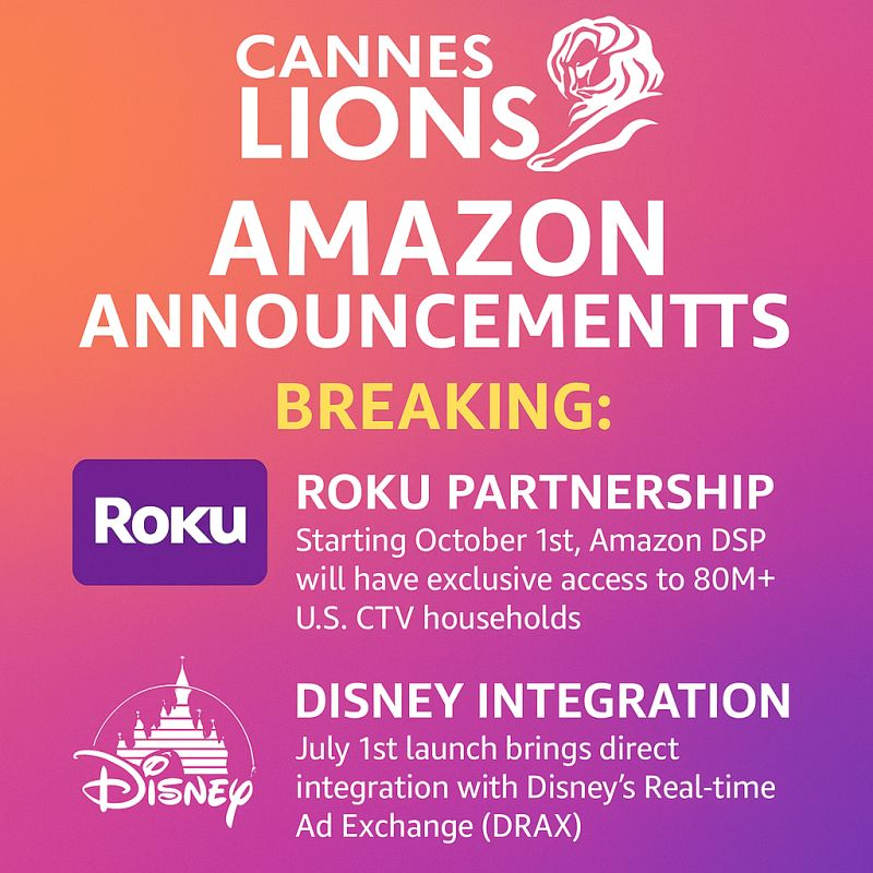 亚马逊广告业务近期传出重磅合作消息:亚马逊与流媒体设备巨头 Roku 达成独家协议,计划于 2025 年第四季度可通过 Amazon DSP 广告触达约 8000万 美国联网电视(CTV)家庭用户,占美国 CTV 用户的 80% 以上。这意味着包括 Roku Channel、Prime Video 以及迪士尼、派拉蒙等入驻 Roku 的主流流媒体应用,其广告位今后都可通过亚马逊 DSP 进行程序化购买投放,实现前所未有的受众覆盖广度。