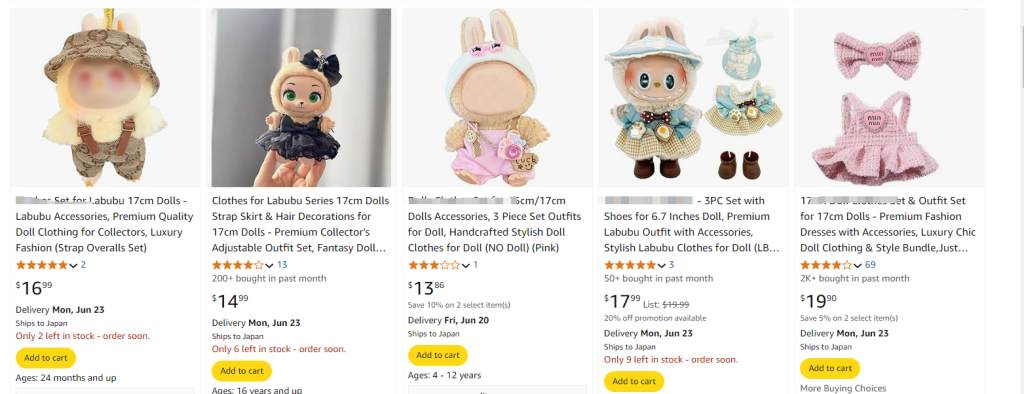 Pop Mart 明确声明:未经授权使用 Labubu 图像、Logo、角色形象即构成侵权,大量亚马逊在售的“Labubu 衣服”、“贴纸”、“挂饰”等 产品常以“兼容”方式销售,但包装及主图中出格使用 Labubu 图像,同样触及侵权内容。