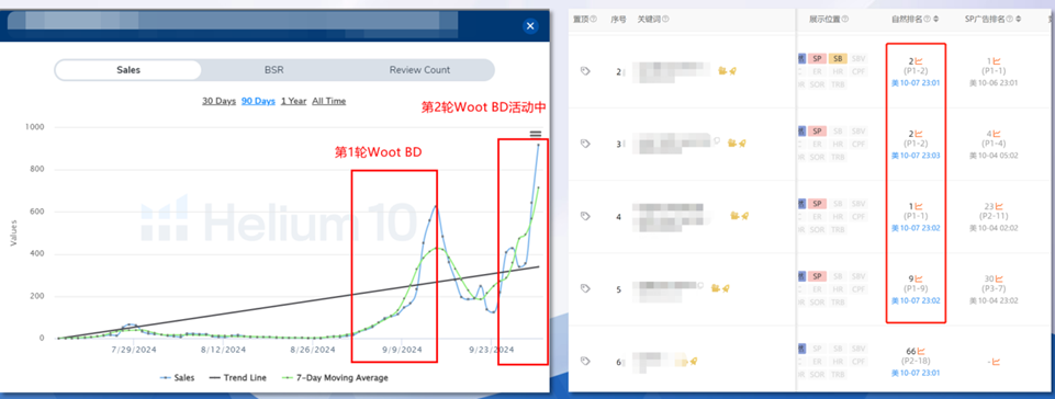 经过两轮BD后,链接取得爆发性的销量增长,关键词的自然排名达到前十甚至前三。