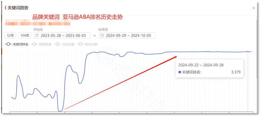 该产品在TikTok 最高日销数千,销量不俗,不过最重要的是,该产品的品牌关键词在亚马逊上的搜索量飙升,ABA 排名从早期的数十万排名到1万以内,如截图: