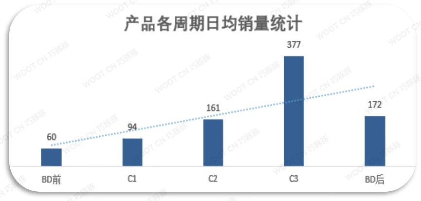 ▲增幅明显:第三轮Woot Deal跨会员日,销量增幅最为明显,日均销量从BD前的60个增长至370+个,呈现出5倍的巨大增幅