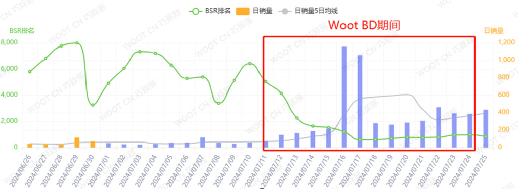 ▲强化市场表现:显著加强了产品的市场地位,并对其在亚马逊的 BSR产生积极影响。 会员日后销量也保持了相对稳定的增长,较参加Woot Deal前增幅近2倍。