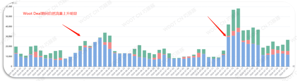 ▲自然流量增长明显:通过多轮BD活动提升销量和排名,有效带动了产品自然流量增长,证明了Woot Deal 活动的积极效果。