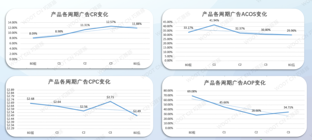 经过三轮Woot Deal活动, 转化率逐轮提高,较BD前提升40%,CPC及ACO逐步下降,降低广告成本的同时,提高广告效率。