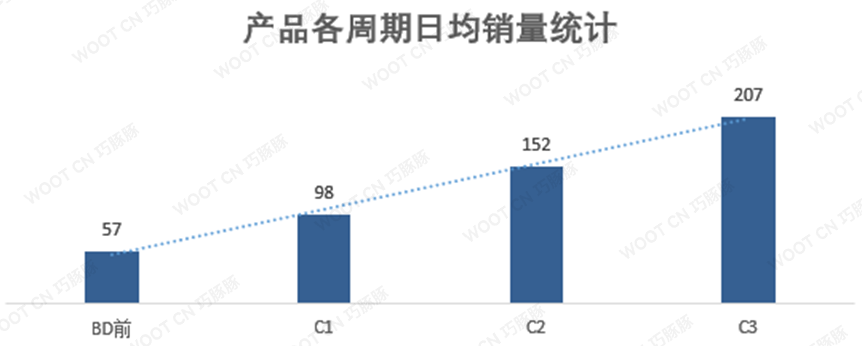 ▲销量稳步增长:依托Woot平台庞大的用户基础和高流量特征,通过参与3轮Woot Deal连秒, 产品的日均销量由BD前50+个增长为200+个;