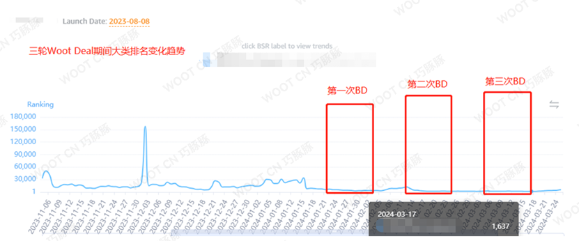 ▲排名显著提升:在Woot平台的助力下,销量持续攀升,大类、小类排名大幅提升,跻身BSR前10,为后续在亚马逊平台上的销售奠定了坚实基础。