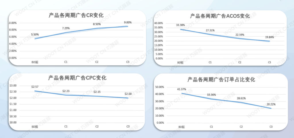 ▲Woot Deal推广期间,配合有效的预算管理和数据分析,广告KPI指标逐步向好,达到了提升CR和降低广告成本的目的。