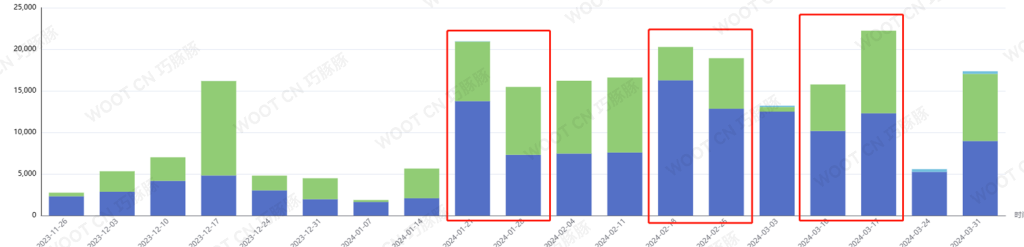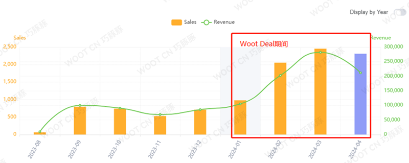 ▲通过参与Woot Deal活动,链接在活动期间流量增长明显,对比没开始活动前1是流量明显增长,2是自然流量同比之前增多(篮色为自然流量)