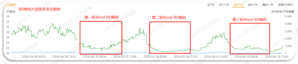 总结 — —Woot BD期间及BD后销量和排名趋势图