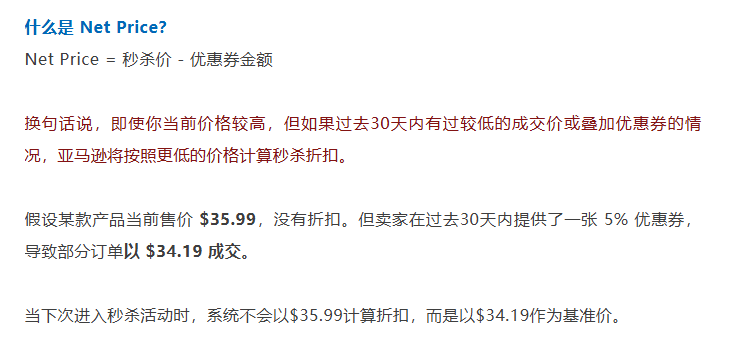 提醒:今年秒杀价计算方式已变,秒杀价 = 近30天最低价 和 Net Price 之间的较低值。