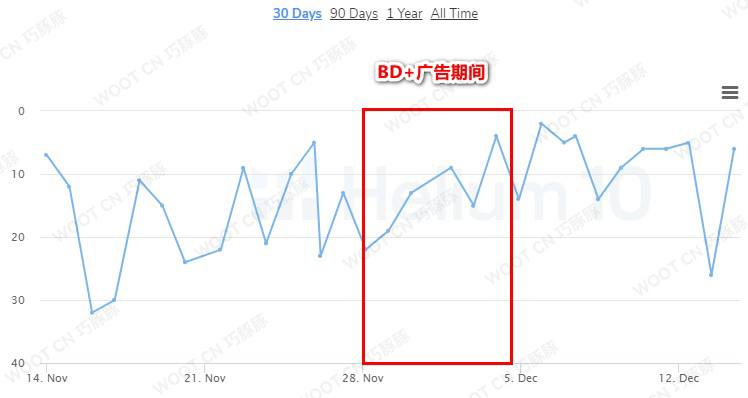 ▲ WOOT BD+广告期间,Top10 关键字数量由94增长为122,增长30%;