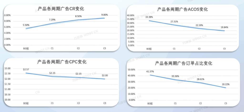 - 广告花费回报(ACOS)逐轮下降至19%;