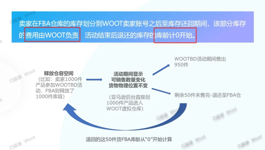 值得一提的是,WOOT 活动结束后,未售完的库存库龄将被重置为零,是控制长期仓储费用的有效方式。