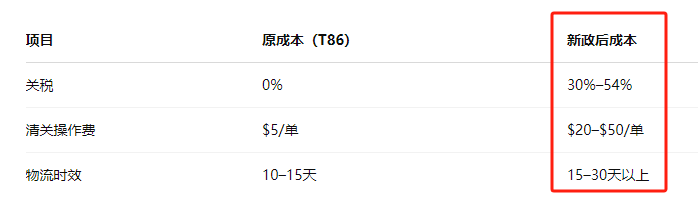 T86豁免政策将于5月2日正式取消,也意味着“800美元免税”时代即将画上句号!与此同时,中国出口至美国的商品将全面加征关税,部分产品税率直冲54%!