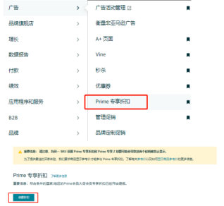 点击 广告-prime 专享折扣-创建折扣接口创建。