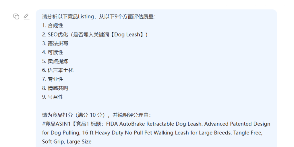 (1)收集竞品的 Listing 内容,包括标题+五点描述+产品描述,复制到下面给 DeepSeek 的提示词中