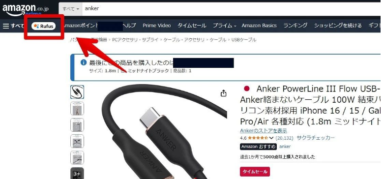 Rufus 评论摘要出现的位置在搜索页产品标题与评分之间,是用户视线扫过产品时几乎不会错过的地方。相比传统评论区,它信息提取更集中、阅读门槛更低,对提升用户信任感非常直接。