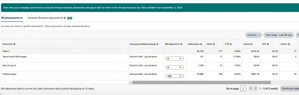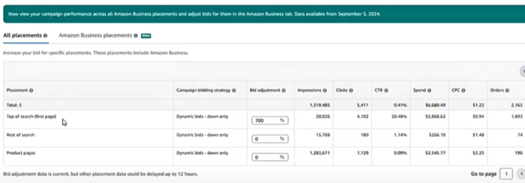 • Bid Adjustment 调整高(比如 +700%),但基础出价压低,确保只出现在产品页,不出现在关键词搜索位。
