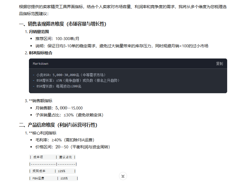 亚马逊选品一直是卖家最头疼的问题,竞争大、产品生命周期短,稍有不慎就可能入坑。与其盲目试错,不如借助 Deepseek + 卖家精灵 的组合,高效筛选,精准避坑,低成本打爆新品。