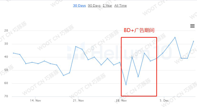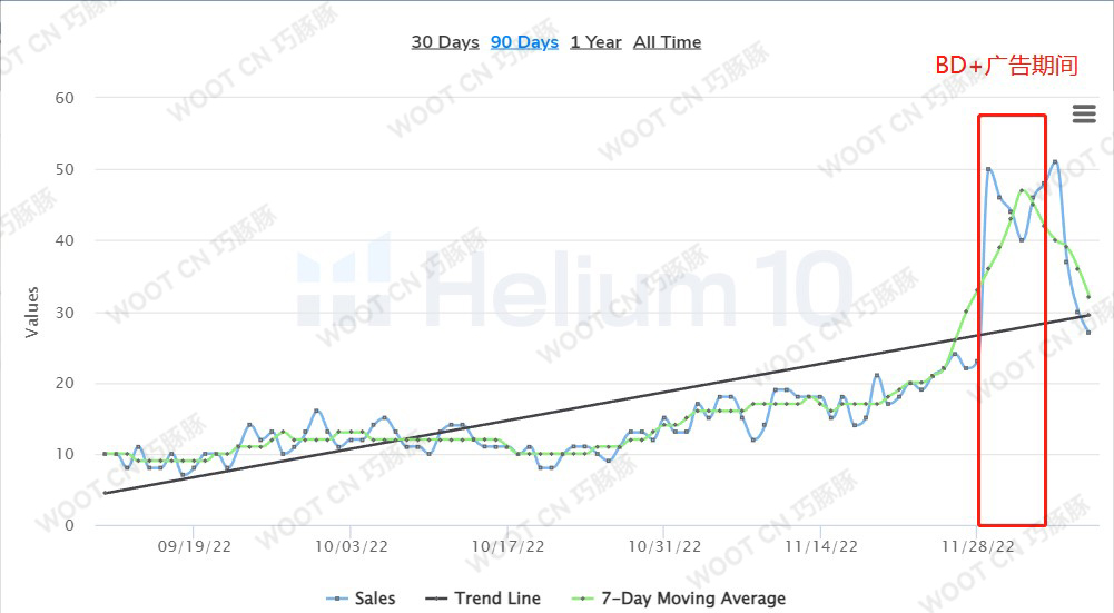 ▲WOOT BD期间销量有非常明显的提升,较BD开始前一周,日均销量提升84%