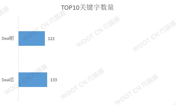 ▲WOOT BD+广告期间,Top10 关键字数量由122增长为133,增长9%;
