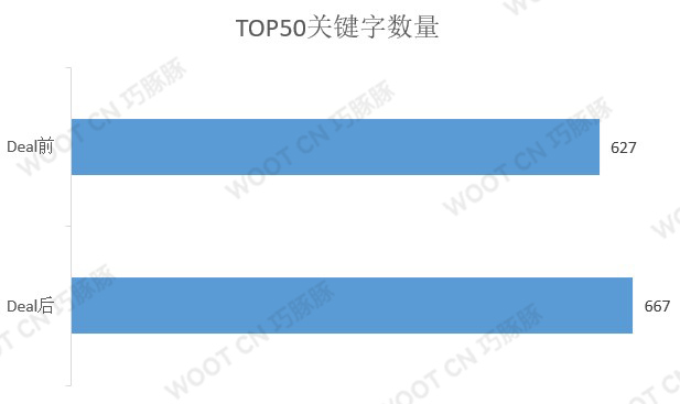 ▲TOP50的关键字数量由627增长为667,增长 6.3%。