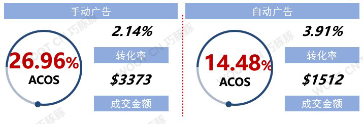 ▲手动广告和自动广告的CR均高于站内广告,手动广告ACOS略高于站内;