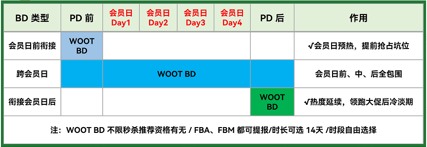 示例:通过多轮 WOOT BD 活动在 Prime Day 前、中、后三阶段连续承接流量,实现“预热-爆发-续热”的一体化推广节奏。