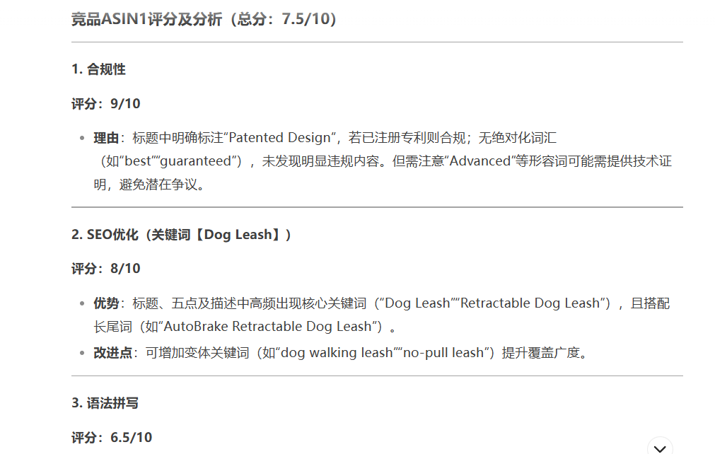 (2)DeepSeek 将自动输出竞品文案质量评分+优化建议。