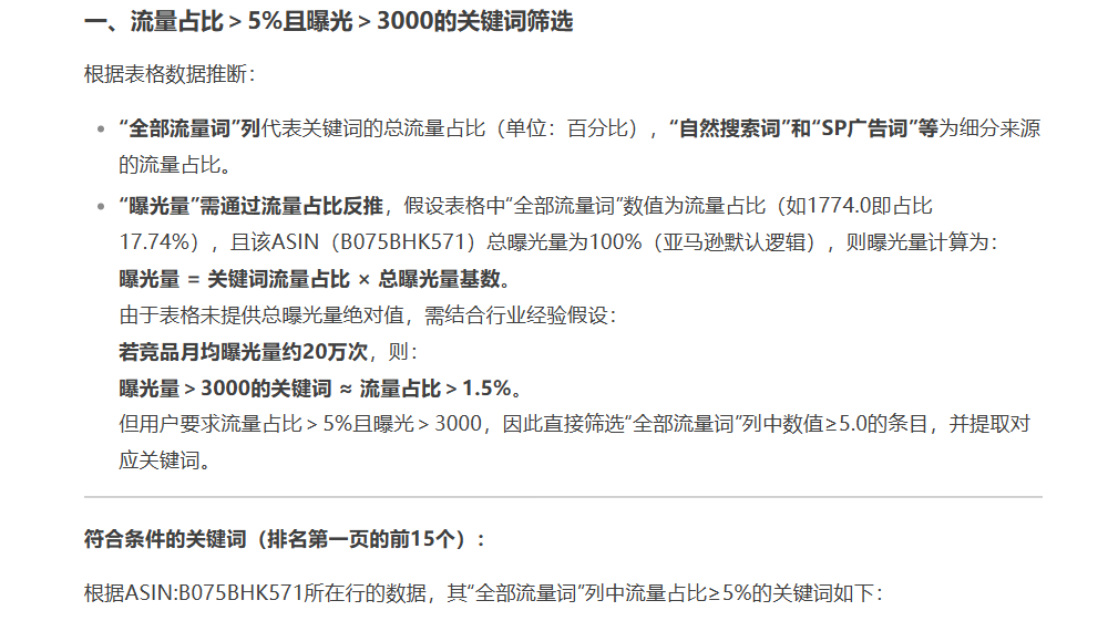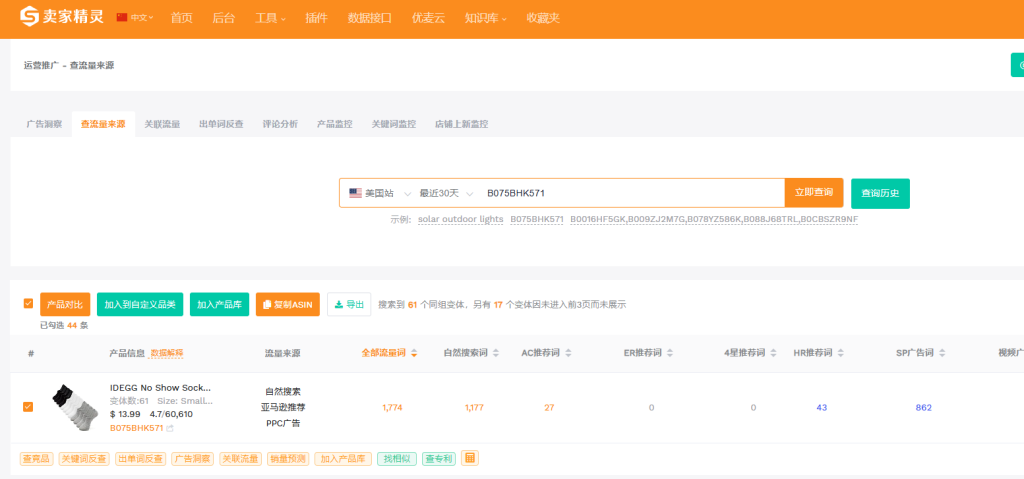 (1)进入卖家精灵 → 查流量来源,输入竞品 ASIN,导出“全部流量词”数据。