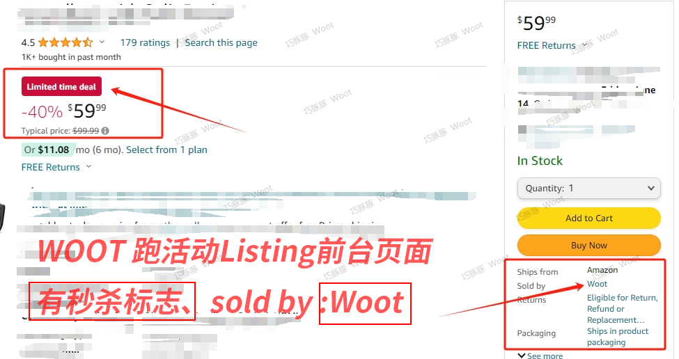 第二步是在跟卖的链接上,去做秒杀活动。基于第二点的话,需要卖家设置WootDeal的价格低于卖家的链接的价格。所以Woot可以拿走购物车。如下图这个产品: